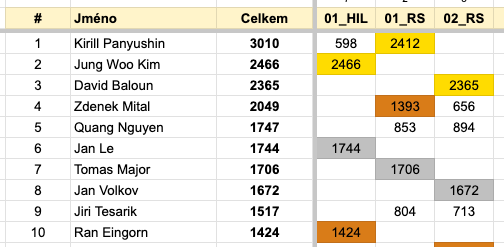 Do TOP10 se podívalo i kompletní trio letošních runner-upů Le, Major a Volkov a nejlepší desítku uzavírají Tesařík s Eingornem.