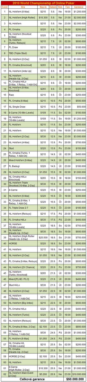 Pokerstars si vyhrazuje práva v případě potřeby změnit plánovaný program celého WCOOP 2010 popř. každého jednotlivého eventu až do doby než tento event začne.