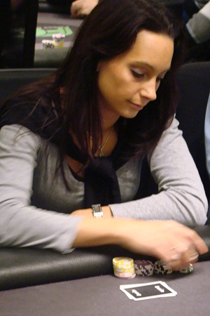 Terka si u stolu nakradla hodně chipů a situace se pro ni zlepšovala. Z turnaje vypadla až při ruce, kdy BTN raisuje, Tereza calluje BB s J-9. Flop jde 9-4-2, Terka check, protihráč bet, raise, oponent posílá all-in s A-9, Terezka call. Board podržel oponenta.