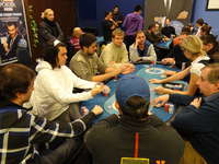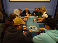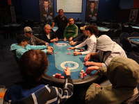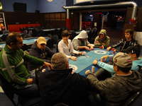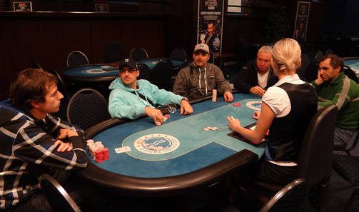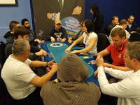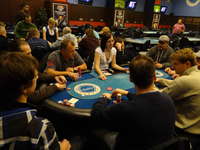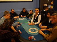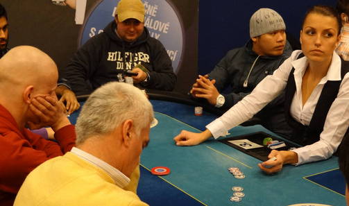 Nové blindy ohlašuje populární floorman Leoš J., jelikož hlavní ředitel turnaje pan Václav R. se již oddává na místním cash-game své milované omaze.