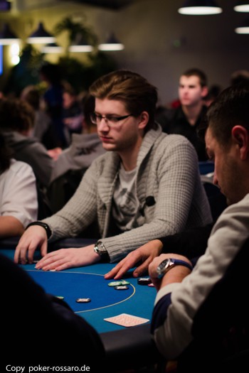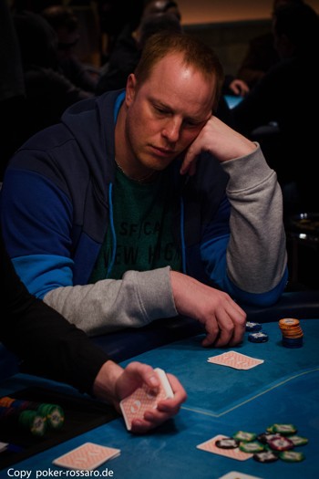 Německému majiteli raket se splnilo, co si nejspíš přál. Jeden ze soupeřů ho preflop poslal za celý 50 tisícový stack (500 BB). Navíc pouze s A