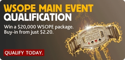 Web Pokerzive.cz pro vás zajistil speciální akci, jak se dostat zadarmo do nedělní $510 kvalifikace o balíček na main event WSOPE, který se uskuteční od 26.9.09 v Londýně.