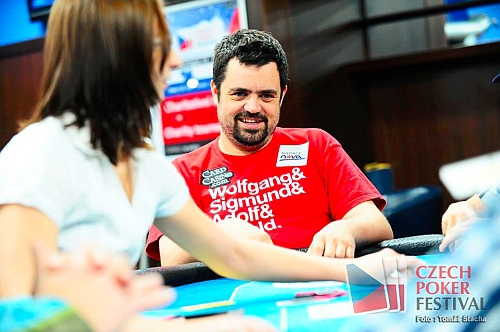 Do hry nakočil pár minut před koncem late registrace také Pavel "ŘezníkZBadenu" Novotný, který nejspíše řešil státnické povinnosti u zapalování řeporyjské hranice. "Hraju ultra tight, neodehrál jsem zatím ani jednu handu, hraju jen TOP4, takže když si to raisnu, tak to mám!" komentuje.