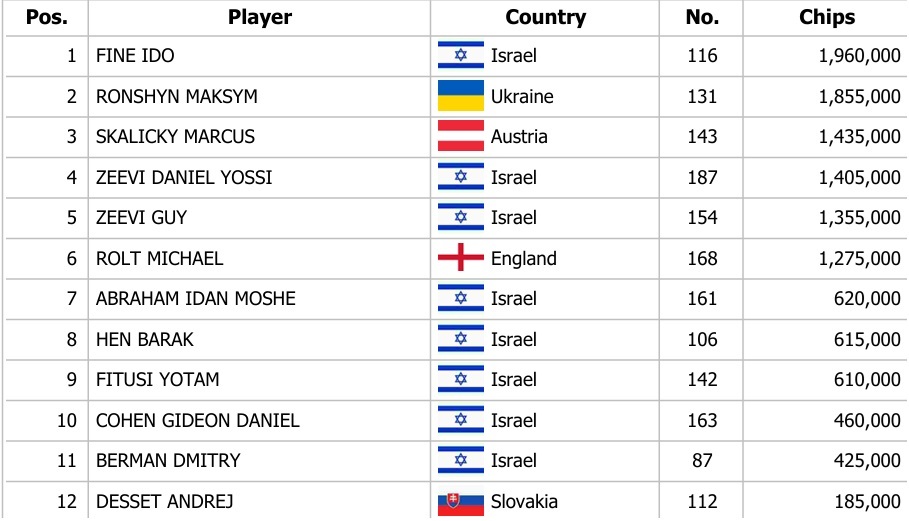 Středeční druhý startovní flight 1B měl celkových 122 entries, což znamenalo postup pro nejlepší dvanáct borců. Postupová listina se hemží izraelskými vlajkami, v "béčku" se z postupu radovalo hned osm Izraelců. Do Bratislavy by mělo dorazit zhruba 400 izraelských hráčů, nabitá akce tak bude určitě i za cash game stoly.
