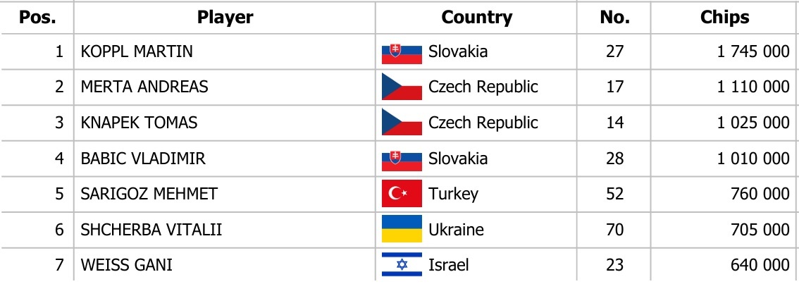 Israeli Federation Cup Main Event €250K GTD – 1B: