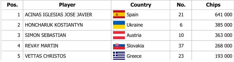 V úterý se odehrál úvodní hrací den, který vygeneroval první postupující. Zatím pomalejší začátek, kdy se nerozjel flight 1A, přinesl slabších 37 entries ve dni 1B. Z postupu se radovalo 5 nejúspěšnějších hráčů, kteří se zúčastní nedělního finále, kde se kromě standardního prizepoolu budou rozdělovat i mystery bounty odměny, z nichž nejvyšší bude mít hodnotu €10.000.