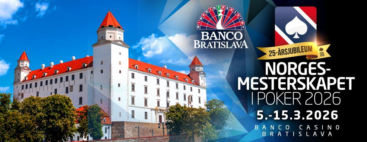 Březen bude v bratislavském Banco Casinu patřit Norskému Mistrovství v pokeru a půjde už o 25. výročí, takže se dá očekávat velká účast hráčů z Norska, ale i z celé Evropy. Poker North Masters garantuje prizepool ve výši €300.000 při buy-inu €400. Zaručené budou i nekončící cash game sessions, to vše od 5. 3. - 15. 3. 2026.