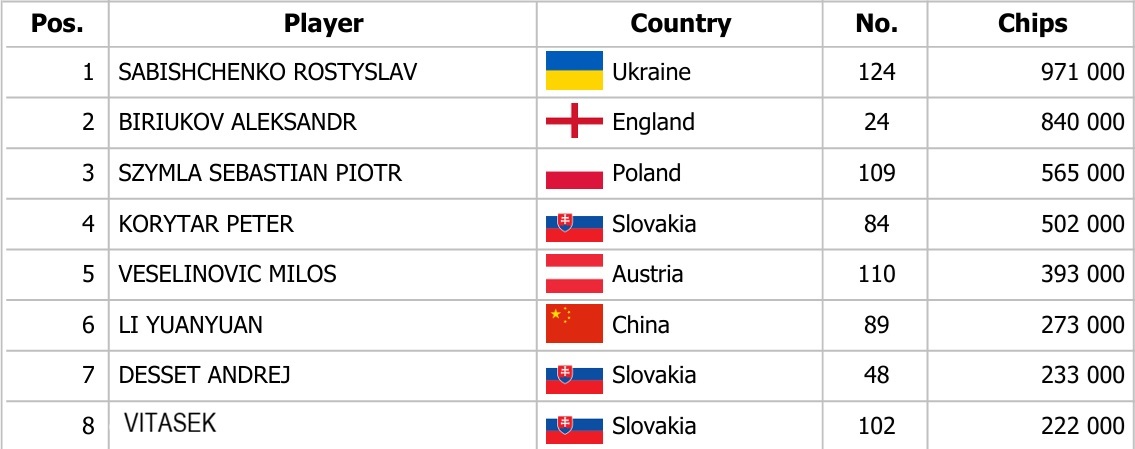 V průběhu dne 1A si cestu do druhého hracího dne našlo 10% nejlepších. Z 80 entries tak jde dál osm borců, mezi nimi i tři Slováci.