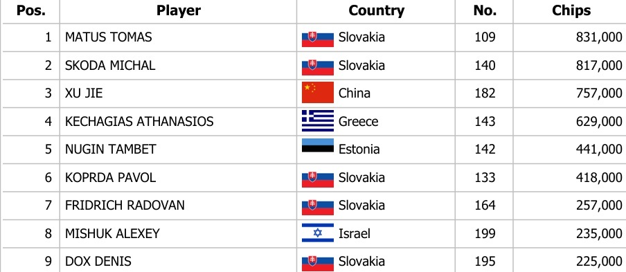 Slovak Poker Open Main Event €300.000 GTD – čtvrtek den 1D: