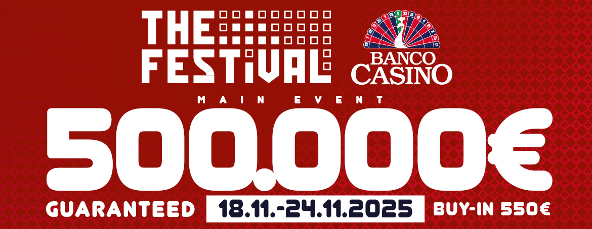 Po obrovském a rekordním Polish Poker Championshipu přichází do Banca populární The Festival 2025 a s ním i Main Event s buy-inem €550 a garantovaný prizepoolem ve výši €500.000.