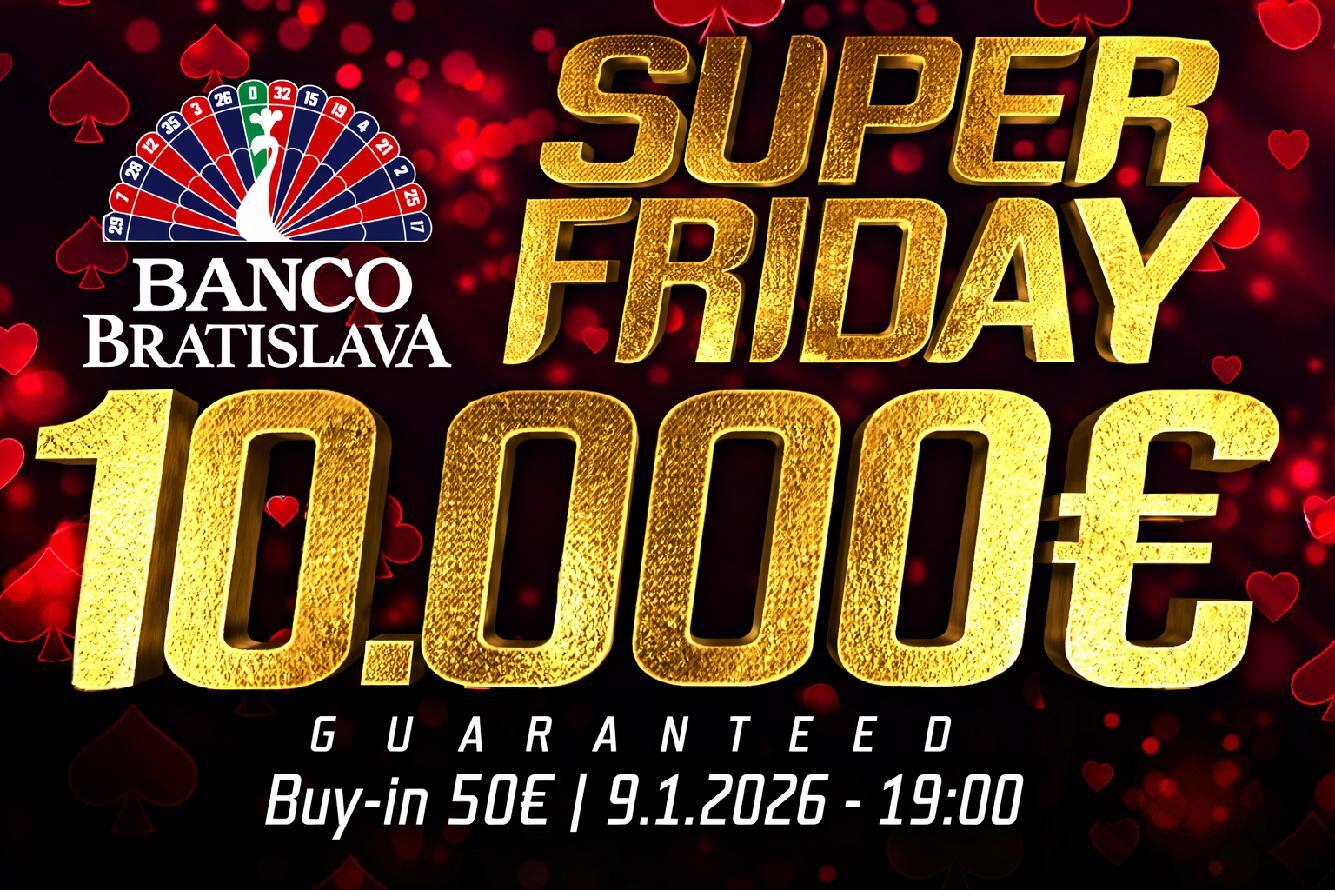 V pátek 9. ledna se hráči mohou těšit na Super Friday event, který za vstupné €50 nabídne garantovaný prizepool ve výši €10.000. Začíná se v 19:00 se starting stackem 50.000 v žetonech.