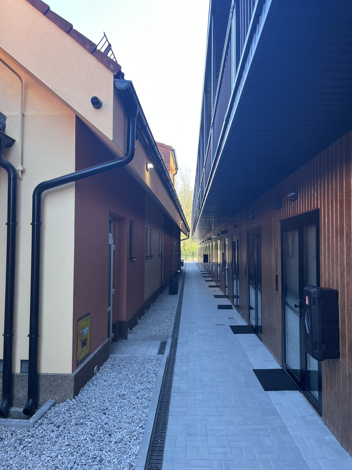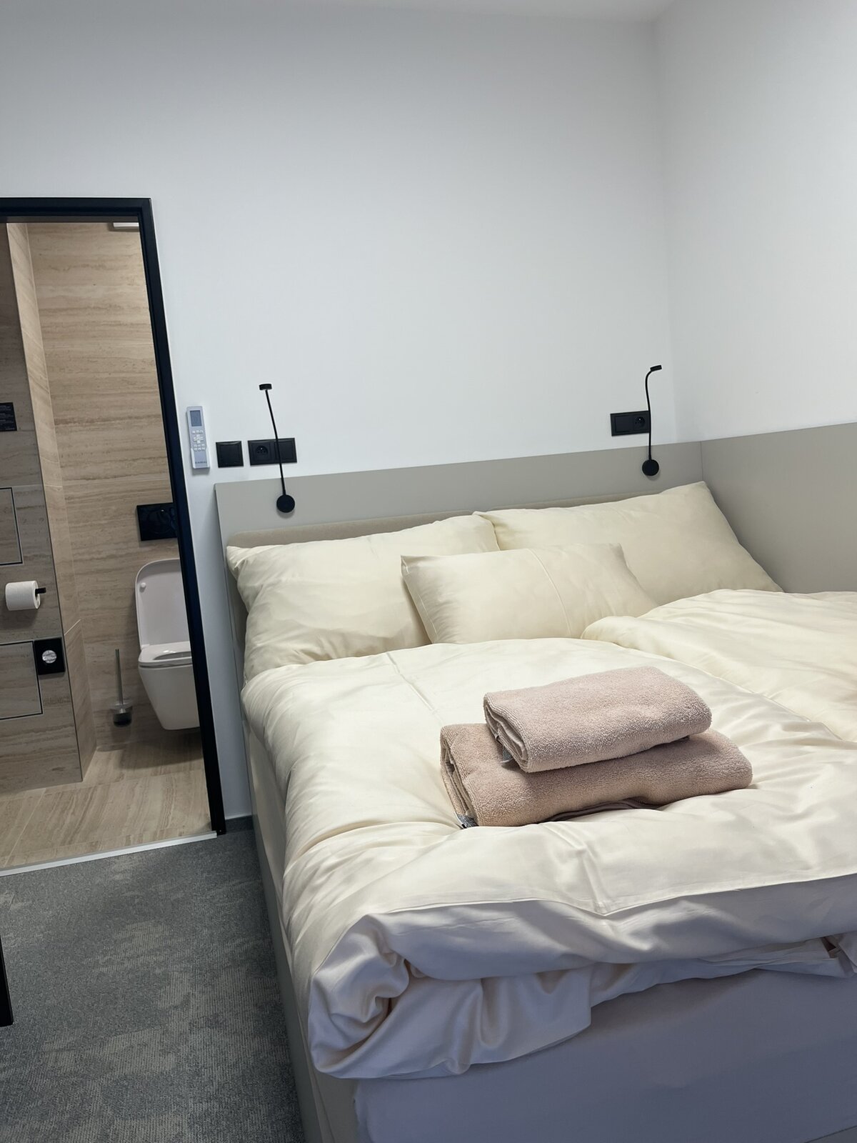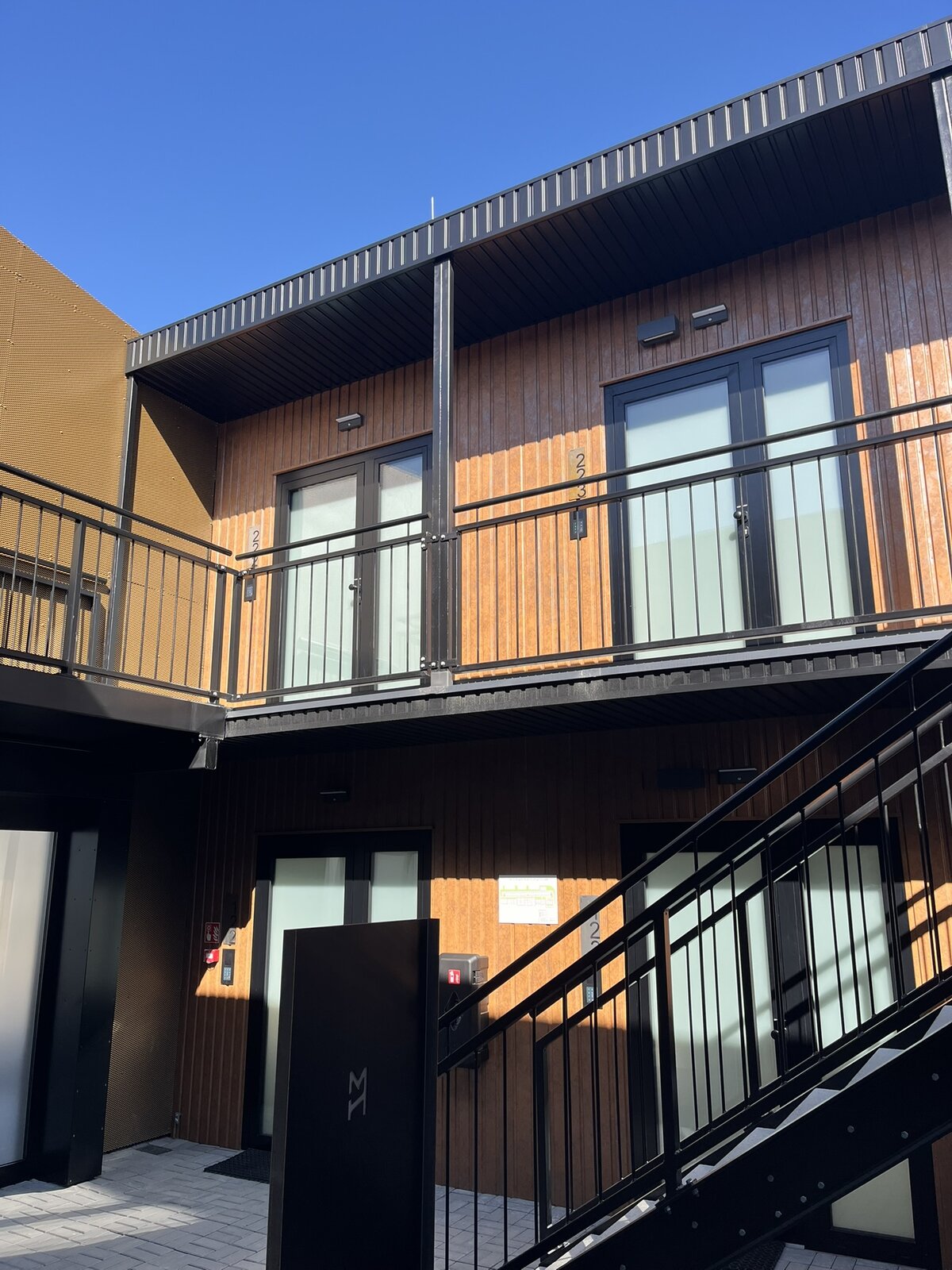 Zvenčí hotel působí velmi moderně, dřevěné obložení dodává celku čistý a přívětivý charakter. Pokoje jsou sice menší, ale rozhodně útulné — čisté, hezky zařízené a s nádhernou koupelnou.