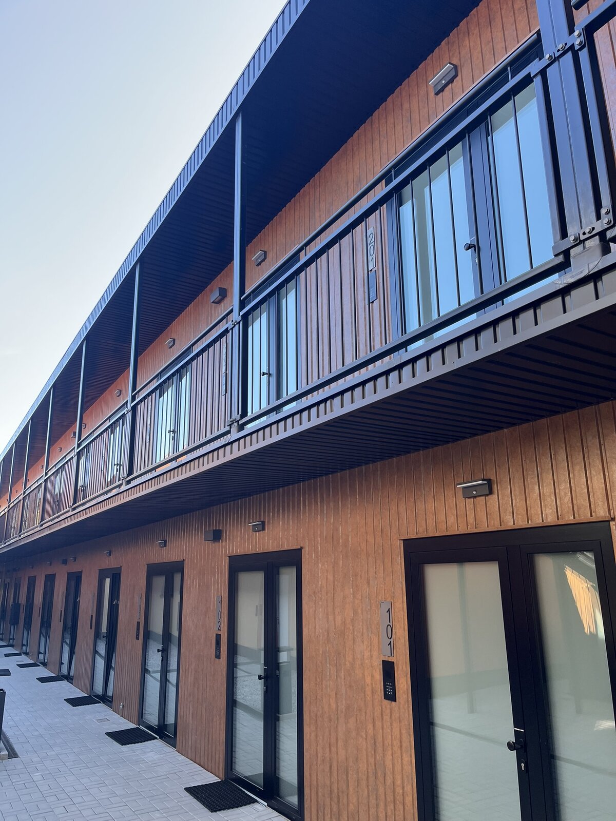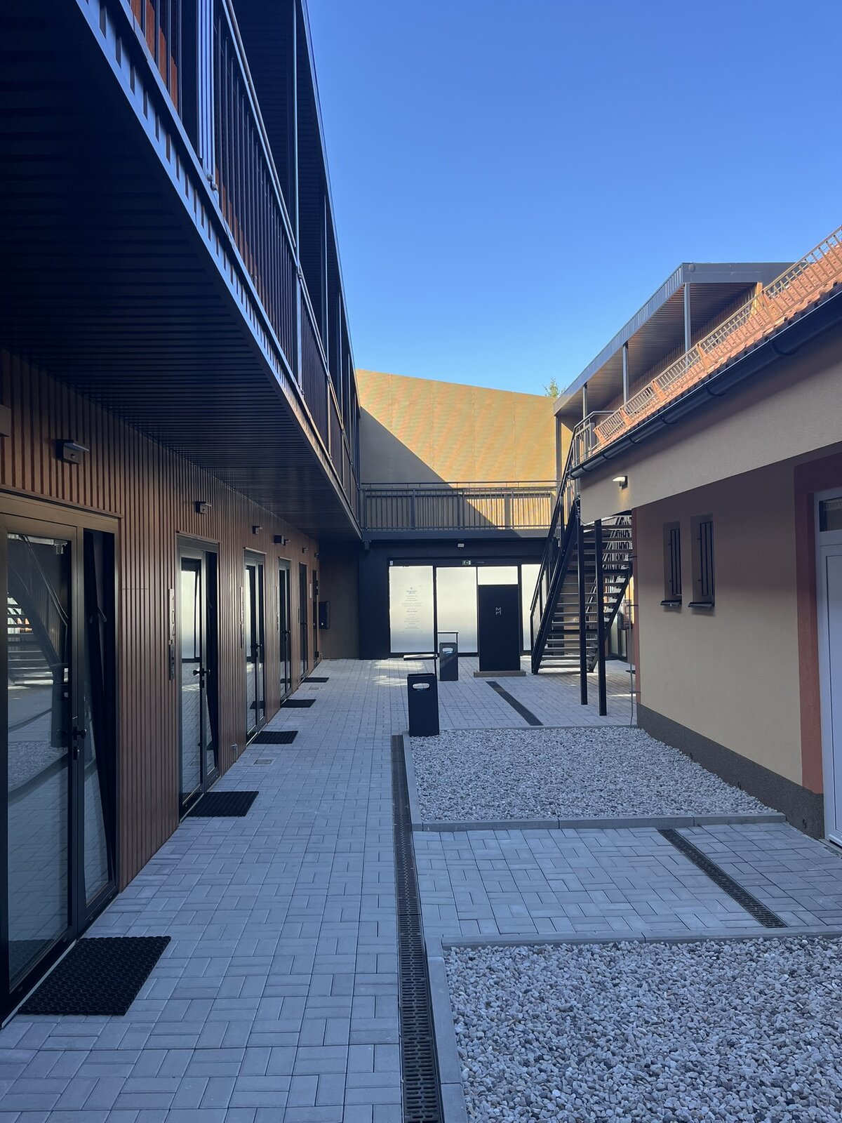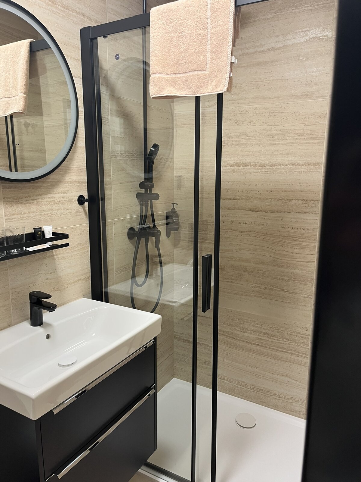 Zvenčí hotel působí velmi moderně, dřevěné obložení dodává celku čistý a přívětivý charakter. Pokoje jsou sice menší, ale rozhodně útulné — čisté, hezky zařízené a s nádhernou koupelnou.