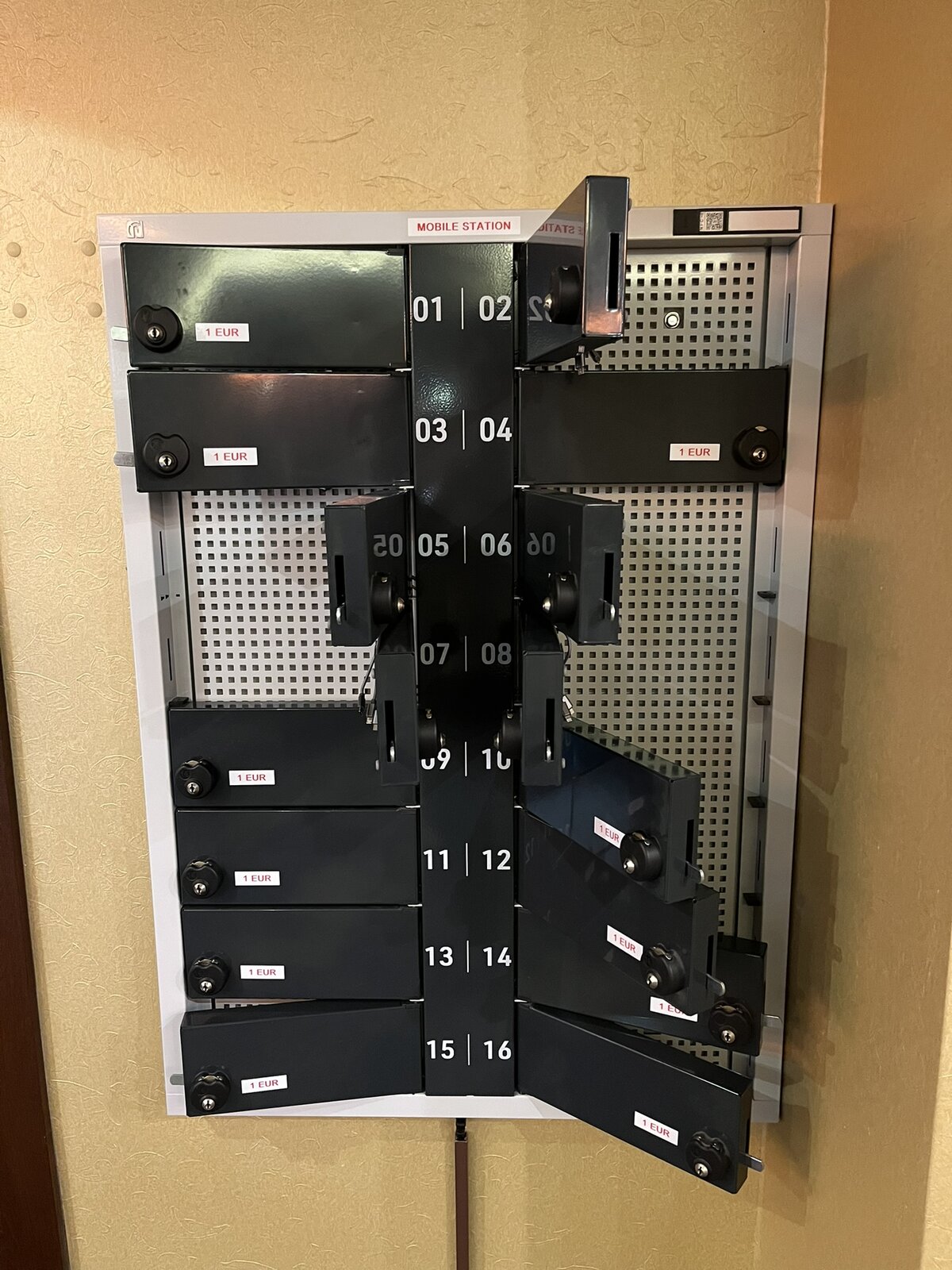 Zajímavou vychytávkou je nabíjecí stanice, kde si za symbolický poplatek €1 můžete uložit a nabít mobilní telefon.