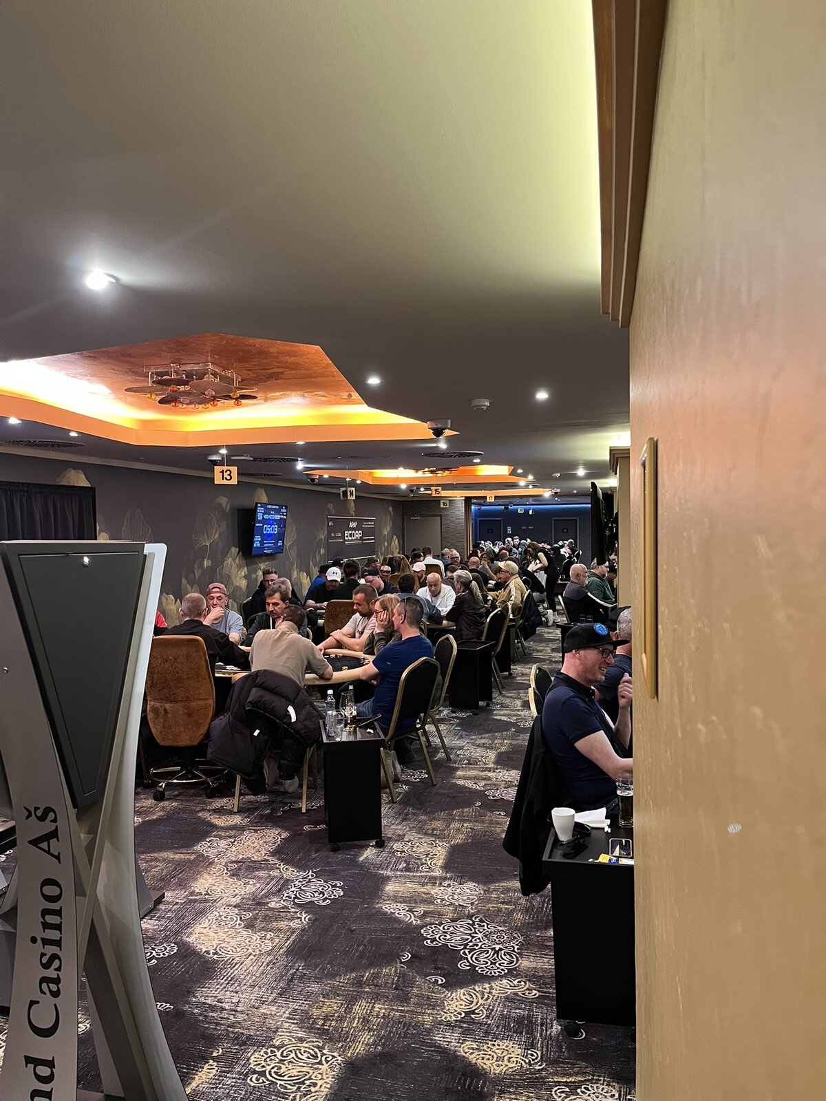 Ve chvíli, kdy jsem dorazil do poker roomu, probíhaly dva turnaje — jednak klasické odpolední turbo s garancí €1.000 a buy-inem €50, ale také finálový turnaj jednoho z německých pokerových klubů, který si pro svůj finálový turnaj vybral právě poker room Grand Casina Aš.