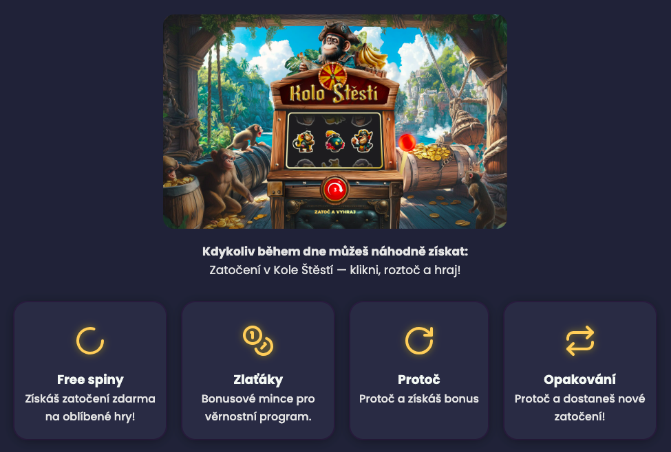 - V pondělí se losuje "šťastných 7x", tj. 7x100 free spinů v nové soutěži.
