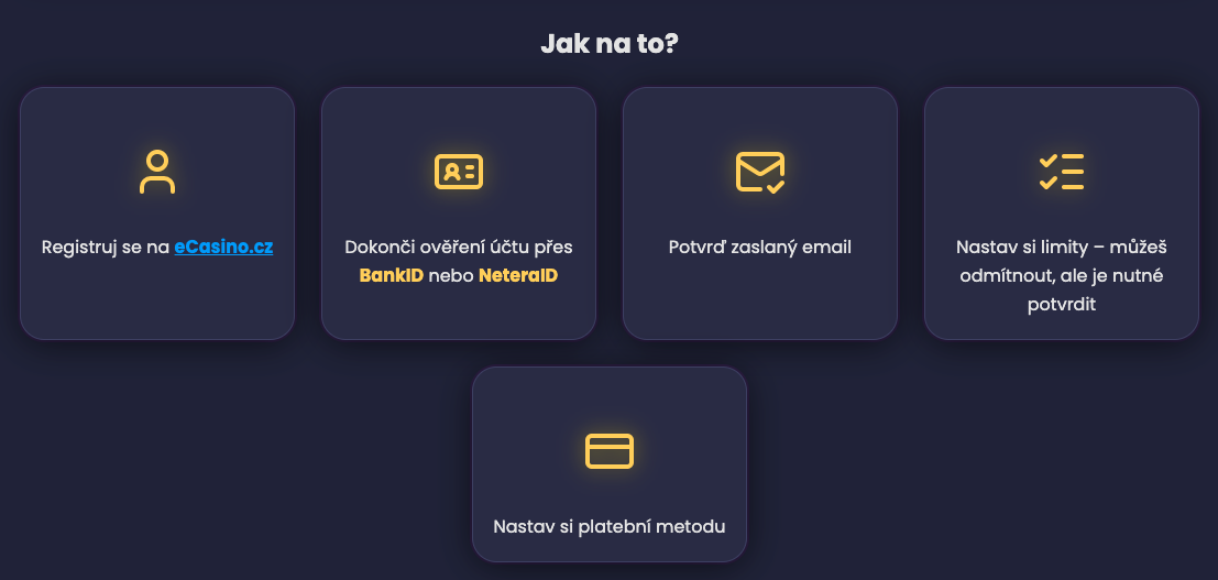 Každý nový hráč na eCasino.cz dostane free spiny za registraci. Stačí dokončit hráčský účet a free spiny jsou tvé. Jak na to? Jednoduše v pěti krocích. Více na eCasino.cz.
