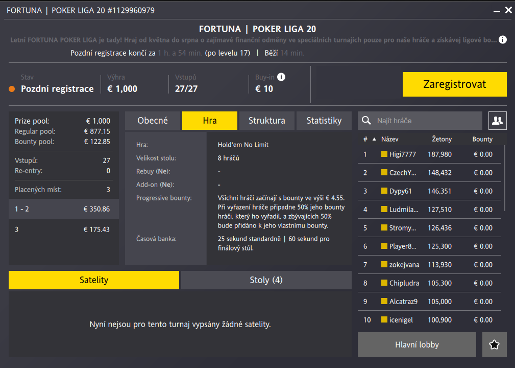 Vše o registraci naleznete v článku Fortuna nově nabízí také poker! Zahrajete si i zdarma!
