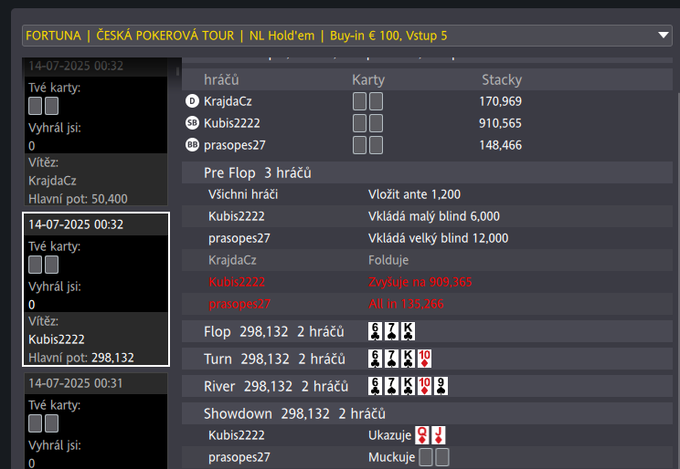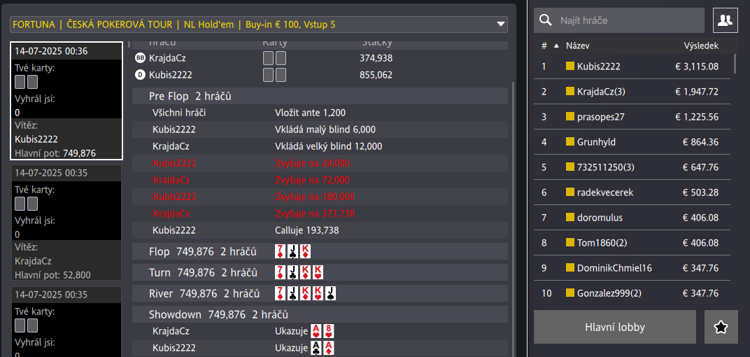 - Fortuna | V červnové ČPT Online kraloval po šťastném heads-upu "JeToMeziNámi" (červen 2025)