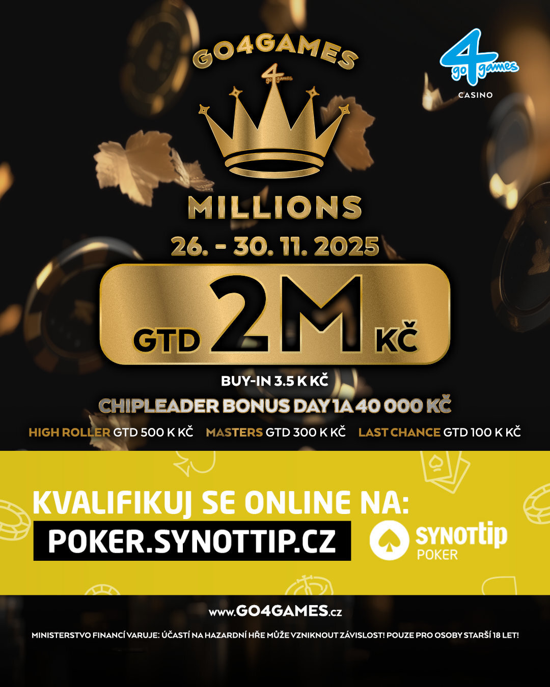 Závěr listopadu patří v hodolanském resortu Go4games v Olomouci skvělé pokerové akci, která má jednoznačný název, Go4games Millions, pětidenní festival má celkovou garanci 2.900.000 Kč!