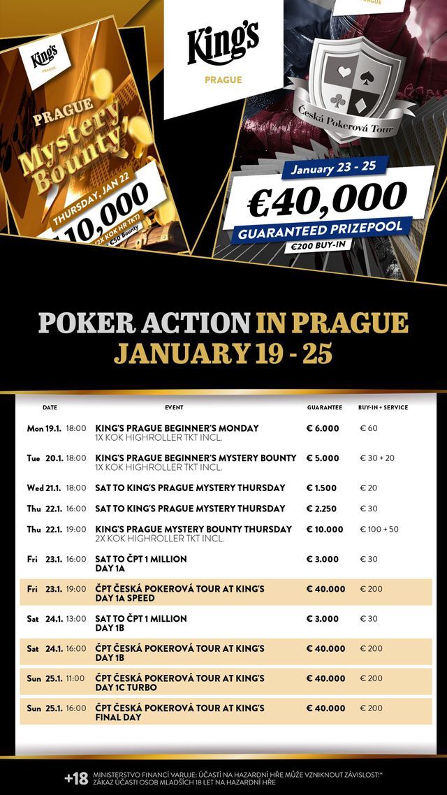 V tomto týdnu se v King's Prague v hotelu Hilton budou konat dva Mystery Bounty eventy, ale hlavně se uskuteční další vydání České Pokerové Tour €40K GTD!