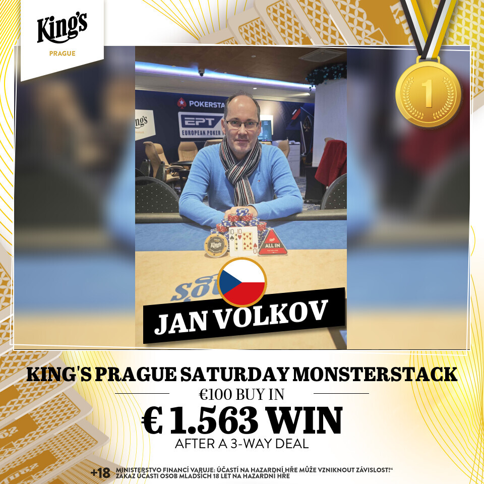 Sobota v King's Prague v hotelu Hilton patřila tradičnímu turnaji Saturday Monsterstack, ve kterém bral nejvyšší finanční prémii Jan Volkov v rámci dealu ve třech.