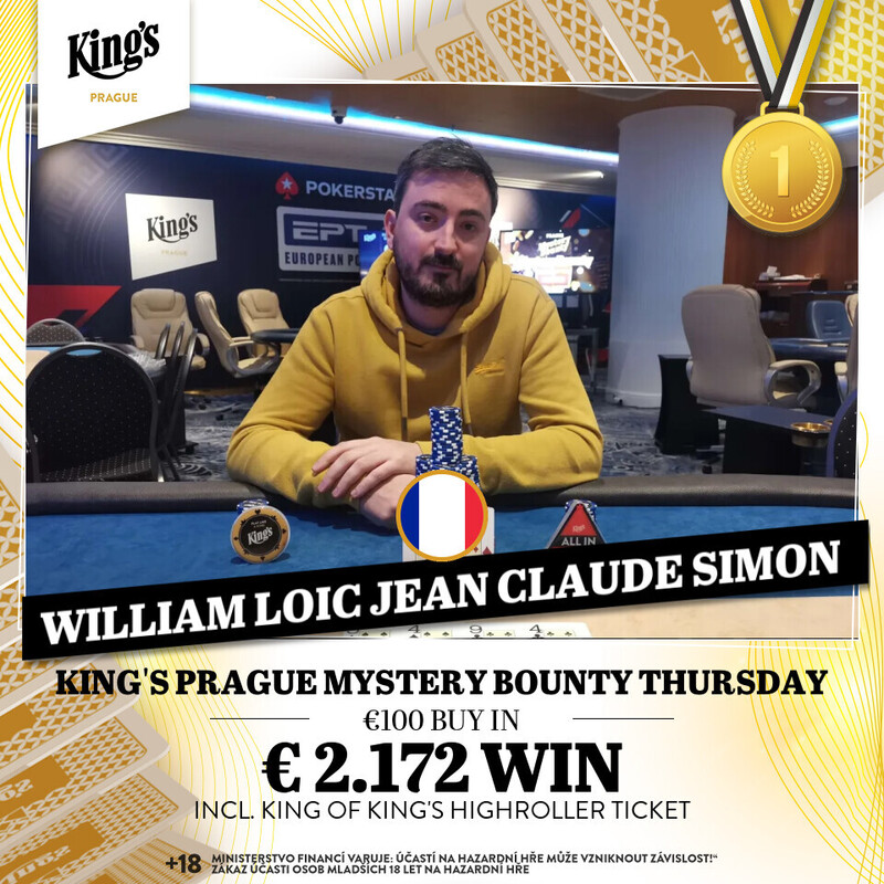 Oblíbený čtvrteční Mystery Bounty event v pražském King's v hotelu Hilton ovládli zahraniční hráči a pouze dva čeští zástupci se dostali do ITM. Daniel Budín se umístil na šesté příčce.