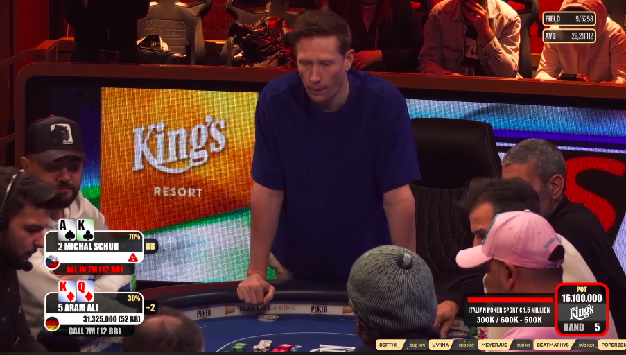 Následná dohoda možného dealu ve čtyřech neprošla, Ali operoval s více než polovinou všech žetonů ve hře a nakonec si dokráčel pro odměnu více než €200K bez dealu. Po cestě vyřadil i Mariána Uharčeka.