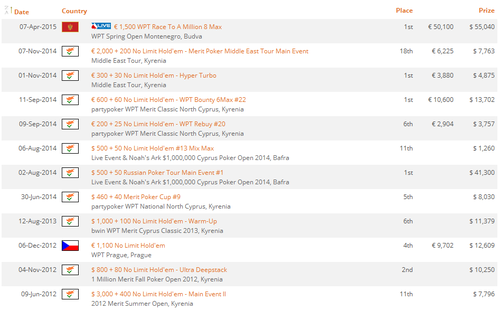 - 2. srpna – vítězství v Main Eventu Russian Poker Tour: $41.300