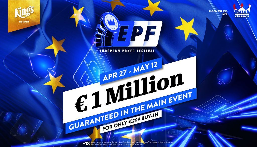 Do prostor rozvadovského King's Resortu zavítá už dnes, v pondělí 27. dubna další pokerová série, European Poker Festival. Dva týdny turnajového pokeru s hlavním turnajem, který za vstupné pouze €299 garantuje minimální prizepool ve výši €1.000.000!