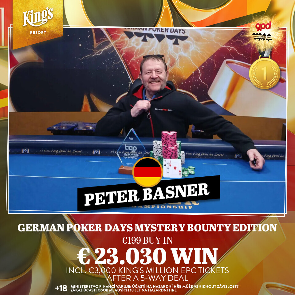 V neděli byl v rozvadovském King's Resortu na programu finálový den Main Eventu German Poker Days Mystery Bounty Edition €300K GTD a také se hrál tradiční GPD Highroller €40K GTD.