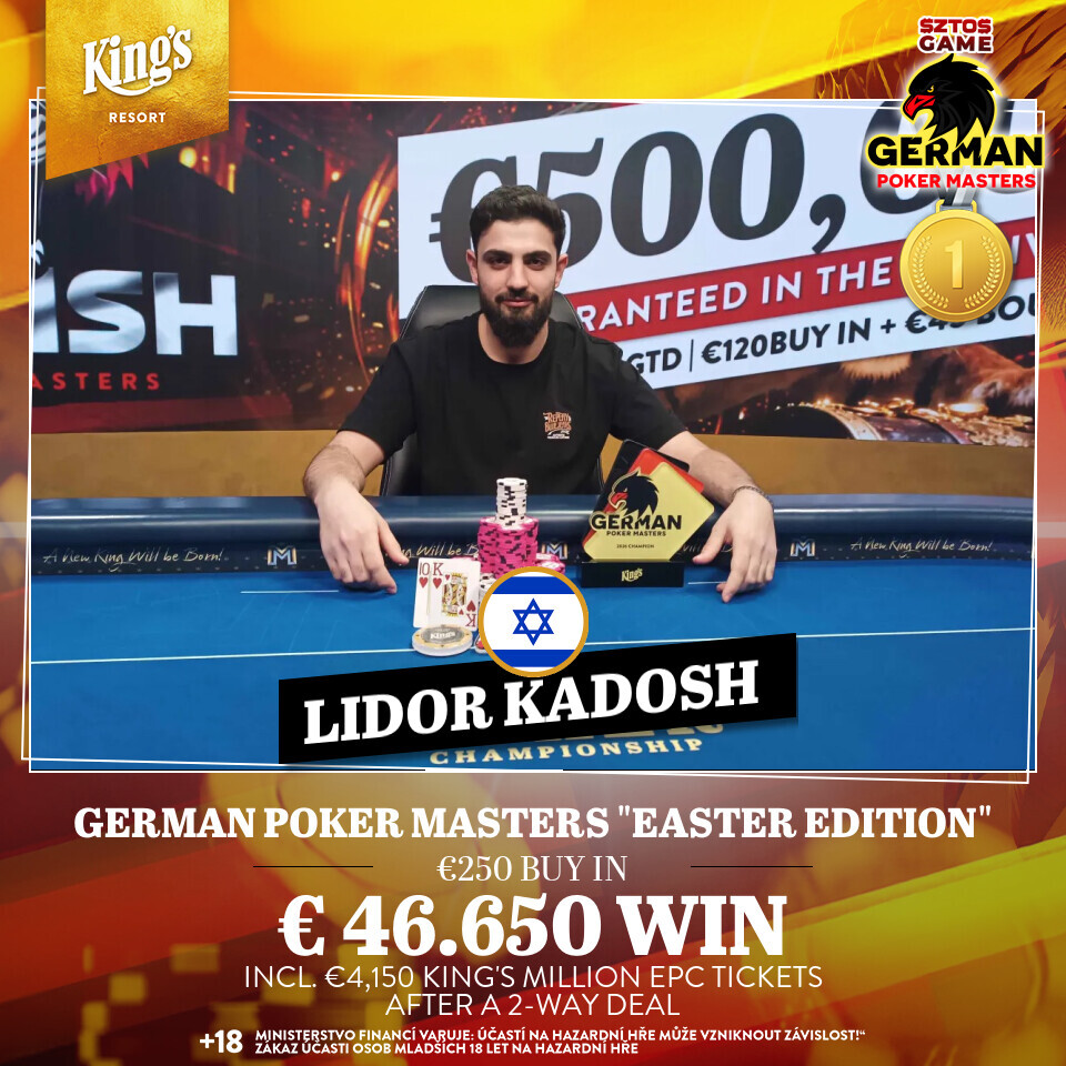 King's GPM: Andrej Desset končí v Main Eventu GPM sedmý, titul bere Lidor Kadosh z Izraele
