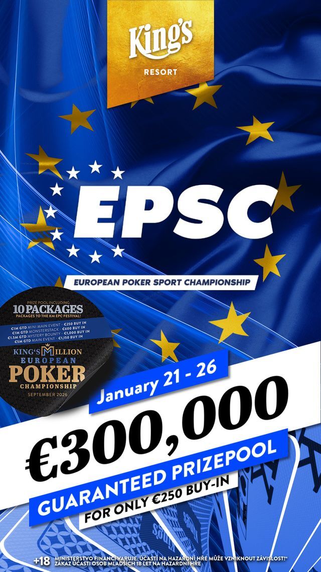 Středa v King's Resortu na Rozvadově bude zahajovacím hracím dnem festivalu European Poker Sport Championship, jehož hlavní turnaj garantuje prizepool ve výši €300.000 při buy-inu €250.