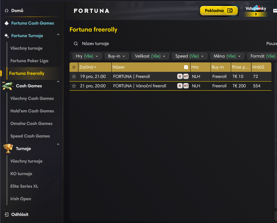 Na fortuně navíc nechybí ani freerolly, pokud si chcete hernu vyzkoušet bez finančního vkladu.