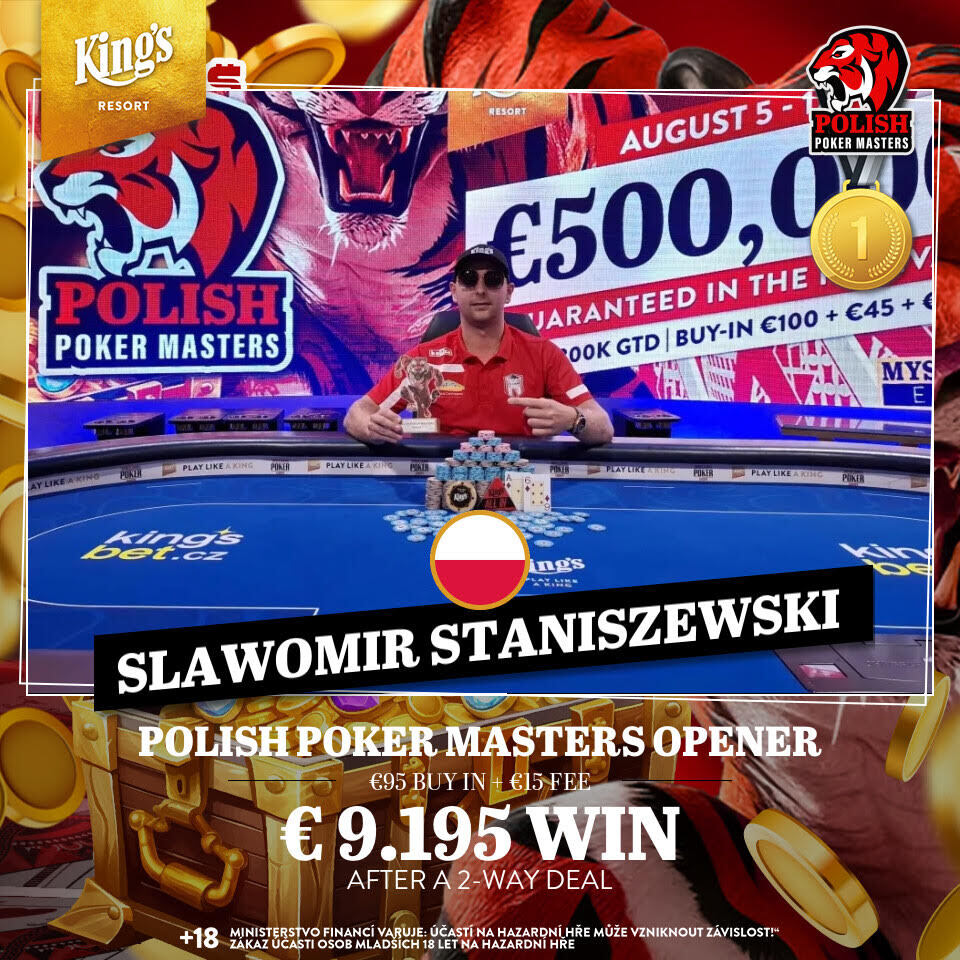 V rozvadovském King's Resortu je v plném proudu festival Polish Poker Masters. Zahajovací tři dny patřili Opener Eventu, který při buy-inu €95+15 nabídl garanci €50.000. Ta se díky konečným 608 entries přebrala a zúčastnění soupeřili o podíly z prizepoolu €54.294!