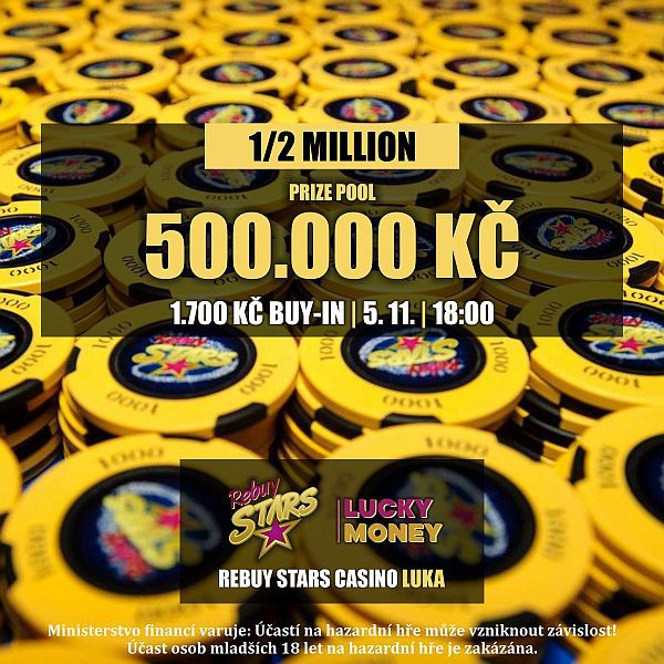 V úterý 5. listopadu je na programu v Rebuy Stars Casinu Luka další z velmi oblíbených speciálů – ½ Million. Jak napovídá název turnaje, v jednodenním speciálu si zahrajete o rovných 500.000 korun.