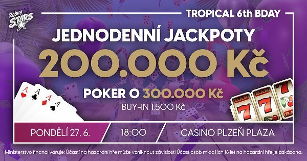 Rebuy Stars Casino Plzeň Plaza oslaví v pondělí šesté narozeniny s tropickým půl milionem