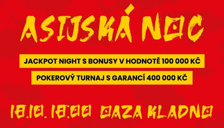Na páteční večer si na Kladně připravili speciální kasínovou akci. Jedná se o Asijskou Noc, večer plný zábavy a asijské atmosféry, ale především pokerový turnaj o minimálně 400.000 Kč za pouhou tisícovku.