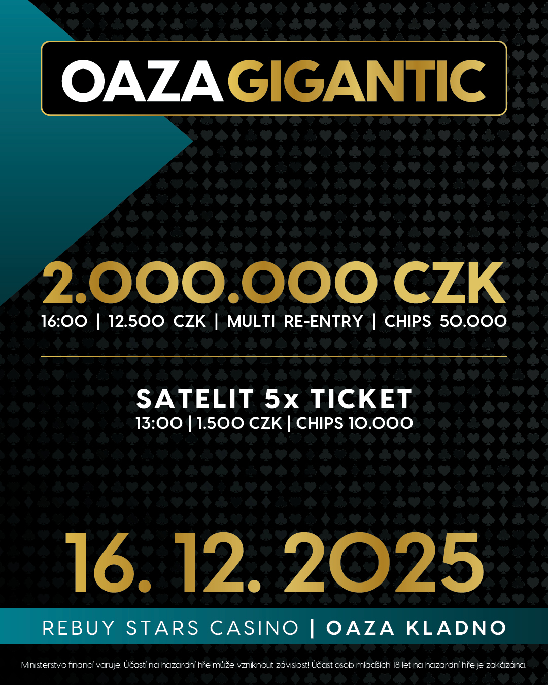 V polovině prosince, v úterý 16.12. bude připraven event, který může hodně zpříjemnit nakupování vánočních dárků. Oaza Gigantic přináší garantovaný prizepool ve výši 2.000.000 Kč při buy-inu 12.500 Kč.