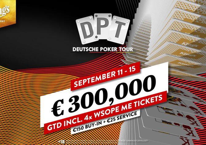 Téměř lidový buy-in a k tomu tučná garance. Taková bude v tomto týdnu Deutsche Poker Tour, která obsadí od středy prostory rozvadovského King's Resortu. Za €150+25 bude ve hře minimálně garantovaných €300.000!