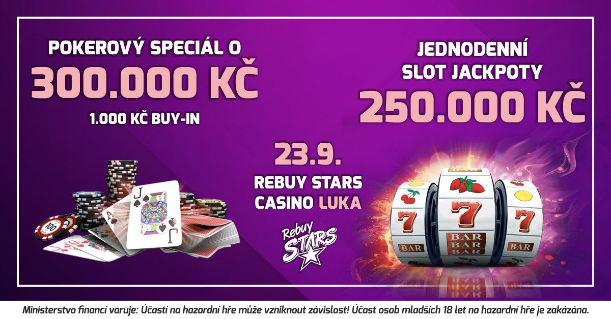 Ve čtvrtek 23. září budeme na pražských Lukách hrát celkem o 550.000 korun. Pokerový turnaj nabídne nabitý prize pool 300.000 korun a další lákavé bonusy rozdělíme díky speciální Slot Jackpot Night. Za jediný večer padnou slot jackpoty v hodnotě 250.000 korun.