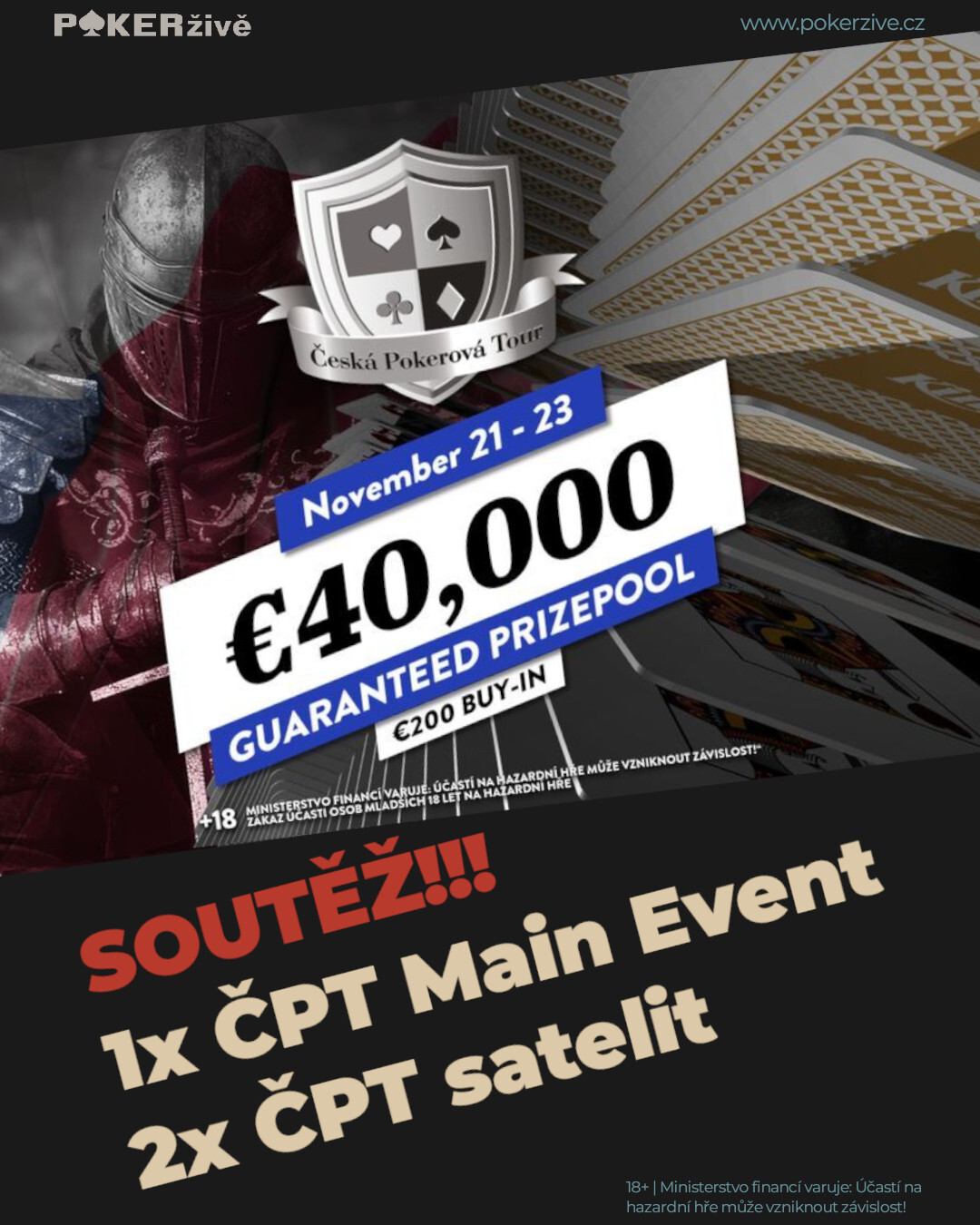 Soutěž o 1× vstup do listopadového ČPT Main Eventu (€200, flight dle výběru) a 2× vstup do páteční ČPT kvaldy (2× €30)!