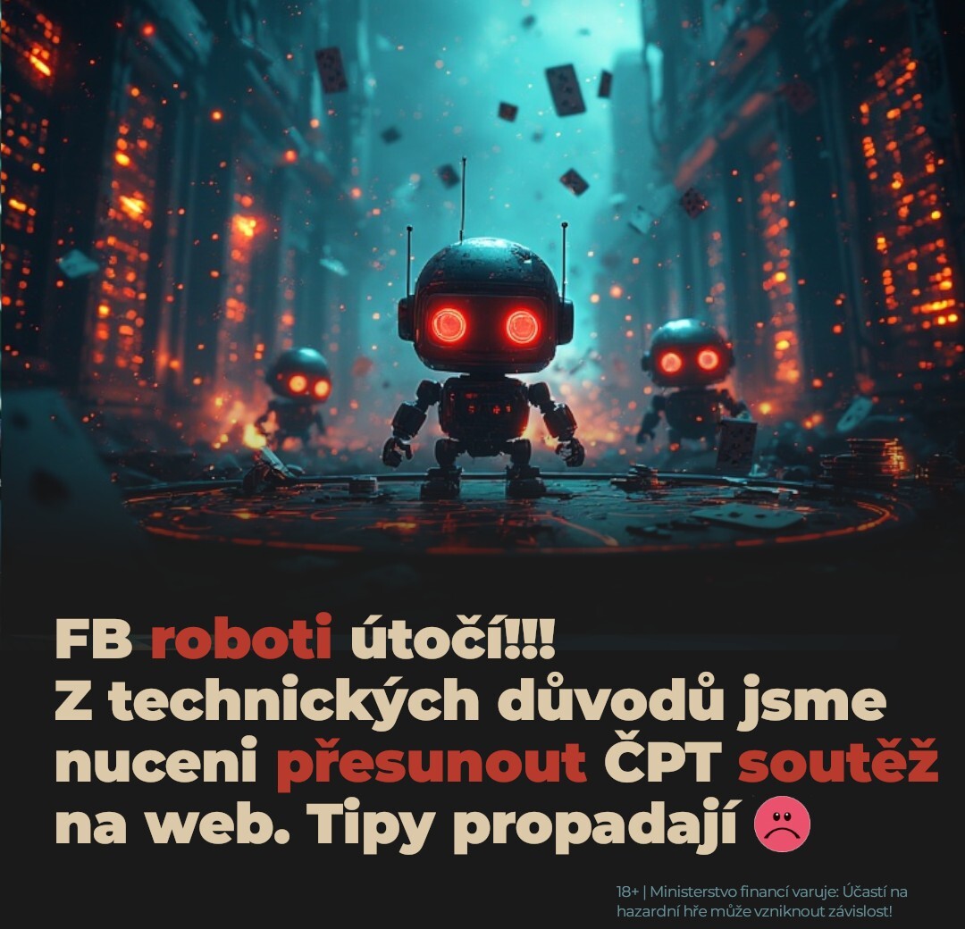 soutěž na webu ukončena!!! Na Pokerzive.cz zaútočili roboti společnosti Meta a s technických důvodů jsme tak nuceni přesunout ČPT soutěž z facebooku přímo na web.