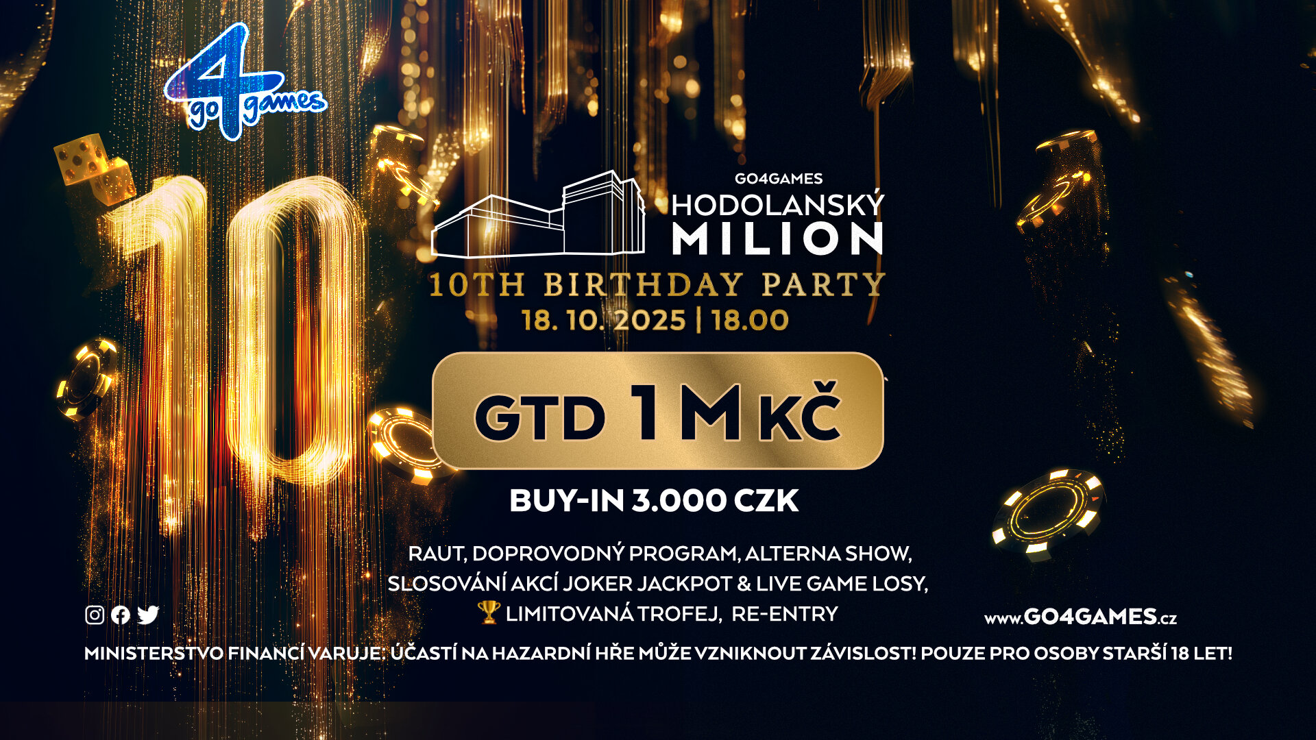 Kulaté 10. narozeniny kasina, Go4games Hodolanský Milion, k tomu narozeninový raut, doprovodný program, Alterna Show, slosování akcí Joker Jackpot & Live Game Losy, limitovaná trofej...