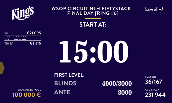 Jedním z mnoha lákadel festivalu je i event WSOP Circuit NLH FiftyStack €100K GTD, který se v programu festivalu skrývá pod pořadovým číslem #6. Buy-in činil €660 a při 167 entries se prizepool vyhoupl na částku odpovídající garanci €100.000.