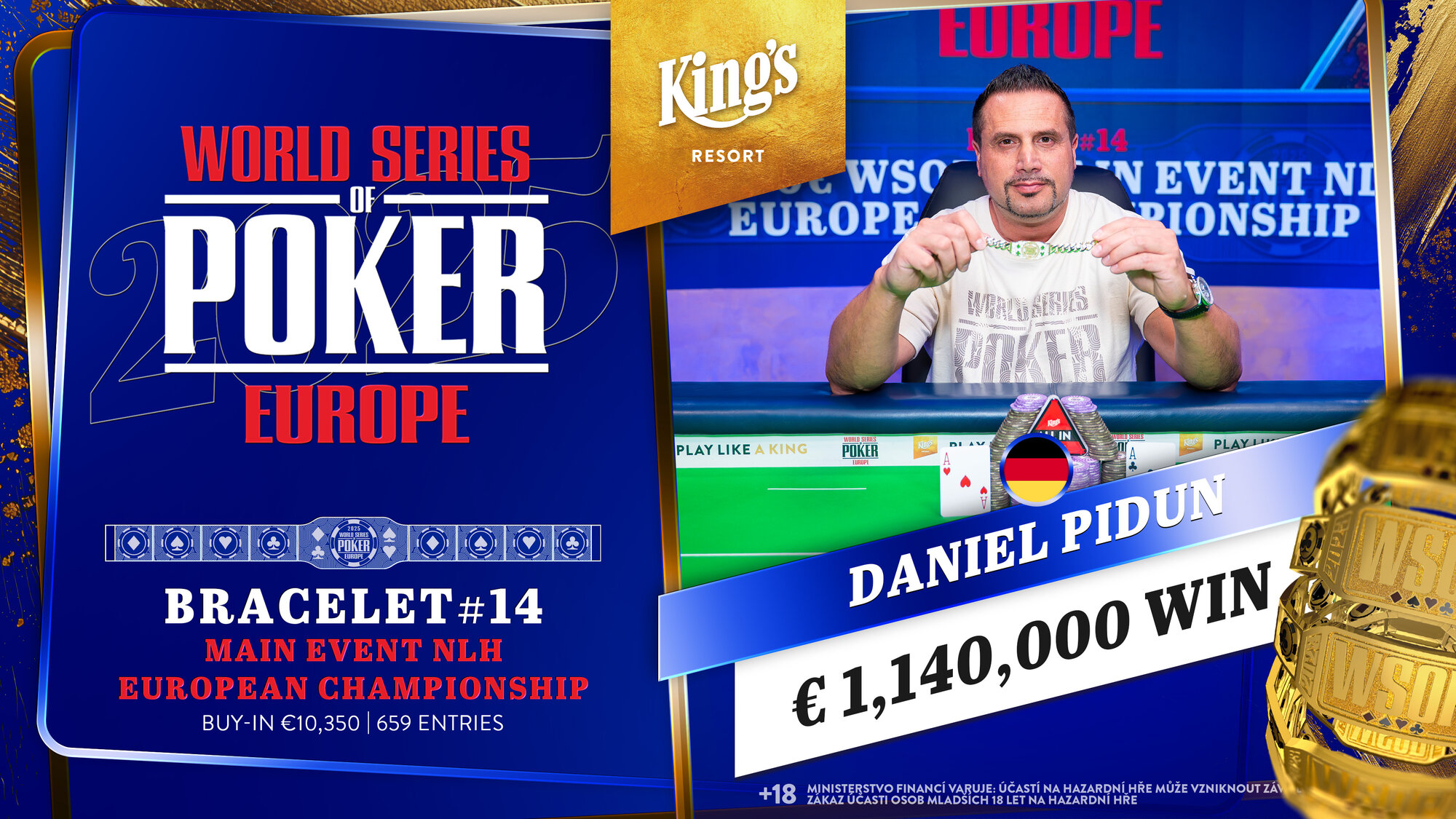 Finálový den hlavního turnaje World Series of Poker Europe si podmanil německý hráč, Daniel Pidun, který tak získal svůj první WSOP bracelet a prémii €1.140.000!