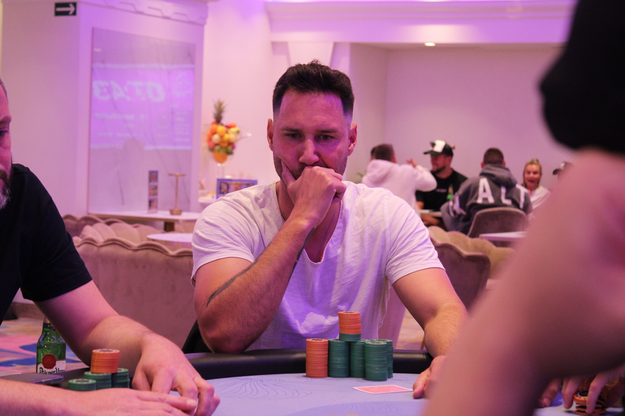 Kromě náhodných turistů, kteří si přišli také zkusit pokerový turnaj doskakují ještě například Robert Guláš (obr). a Jan Bogáš.