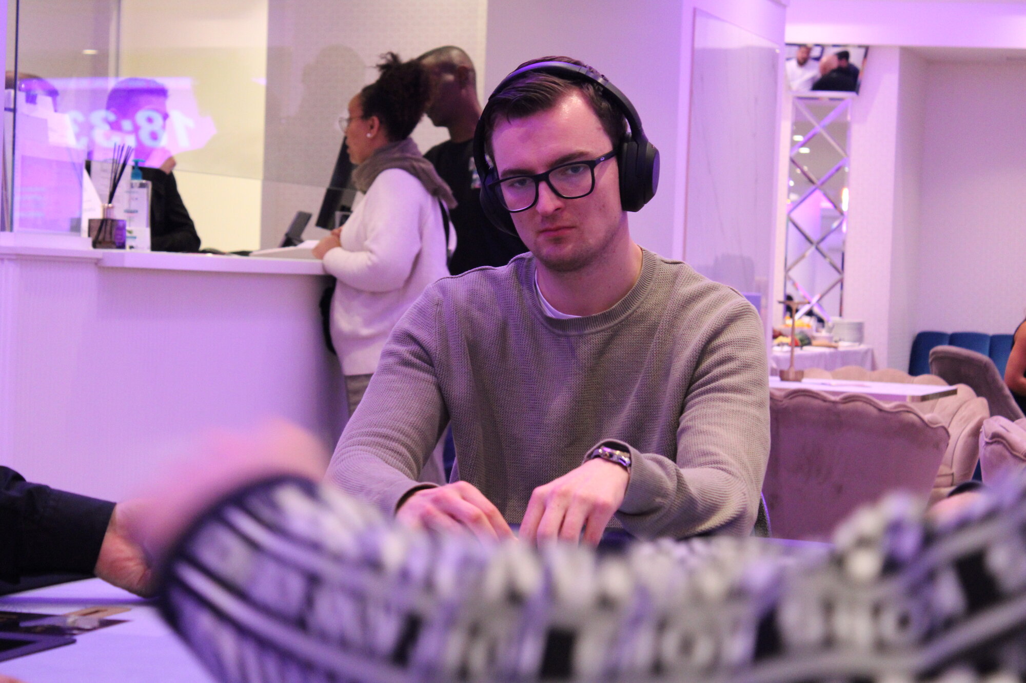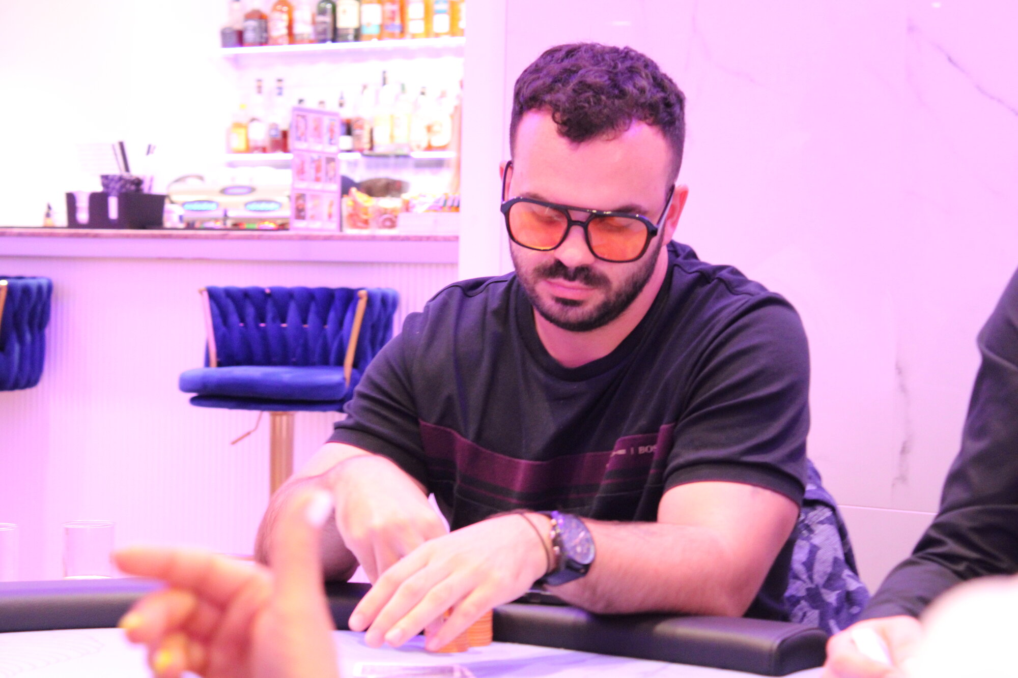 Jan Bogáš si limpne UTG a spousta dalších limpů za ním, načež Itay Itzhaky (SB) otevírá na 1.2k, Bogáš 3betuje 5.2k, které dorovnává anonym (HJ) a Itzhaky projevuje respekt a své karty zahazuje.