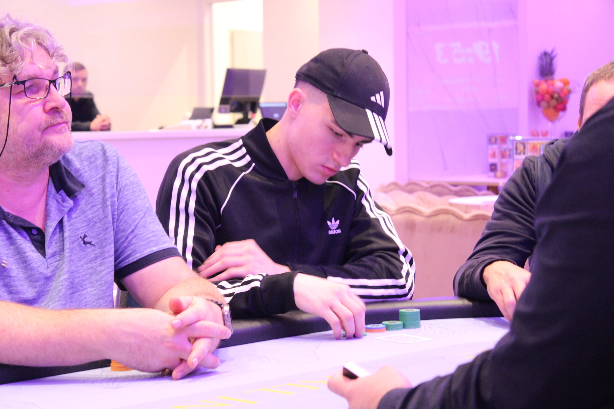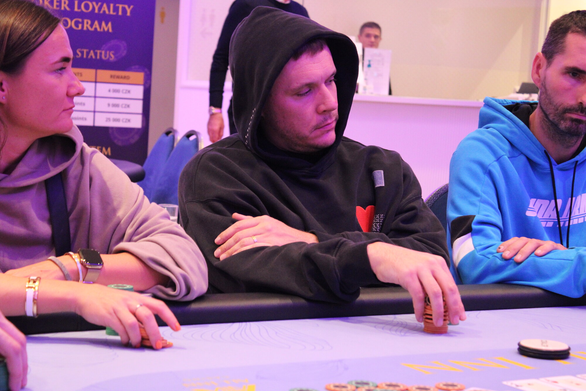 Jaroslav Král (HJ) open 3.5k, načež Petra Riegerová (BTN) hlásí allin 13k, Král dorovnává.