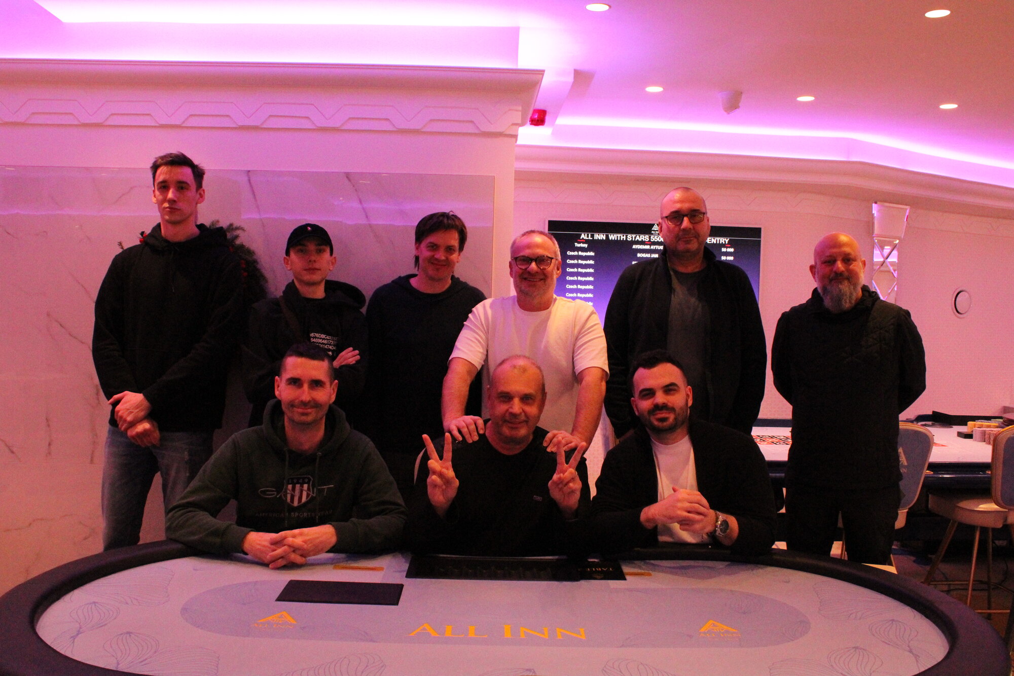 Sledovali jsme živě V kasinu ALL INN na Václavském náměstí v Praze finishovala ve středu od 18:00 svým jedenáctým turnajem druhá edice série ALL INN with Stars. Poslední trojice hráčů se dohodla na dealu, Tony Felfel odnáší trofej, tickety do finálového turnaje připadly Damianovi a Kolukalovi.